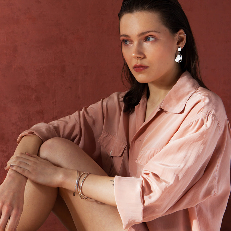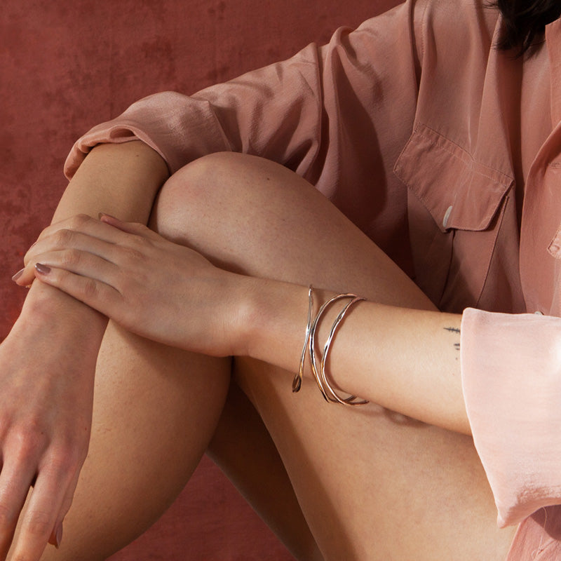 Bracelet de forme fluide et irrégulière façonné à la main et