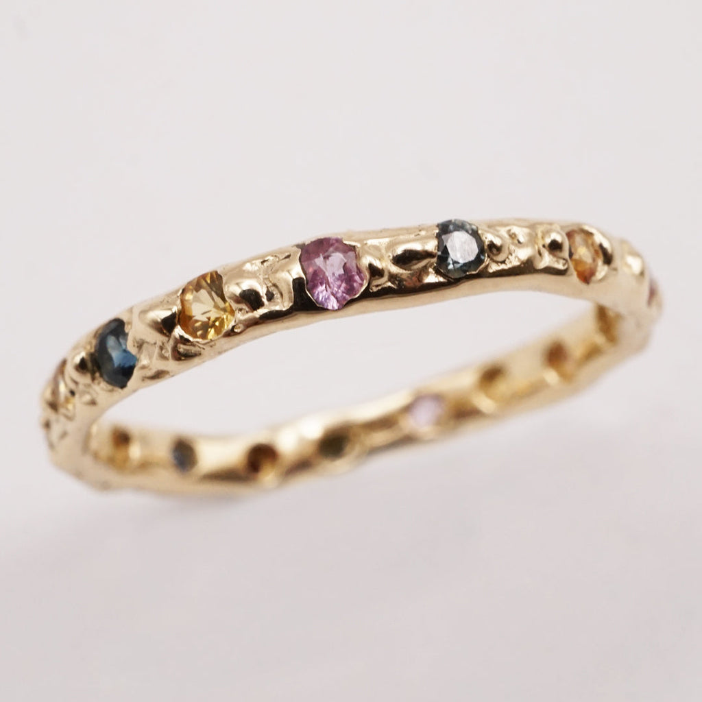 Bague VALERIA - saphirs colorés 2.2mm et or 14k