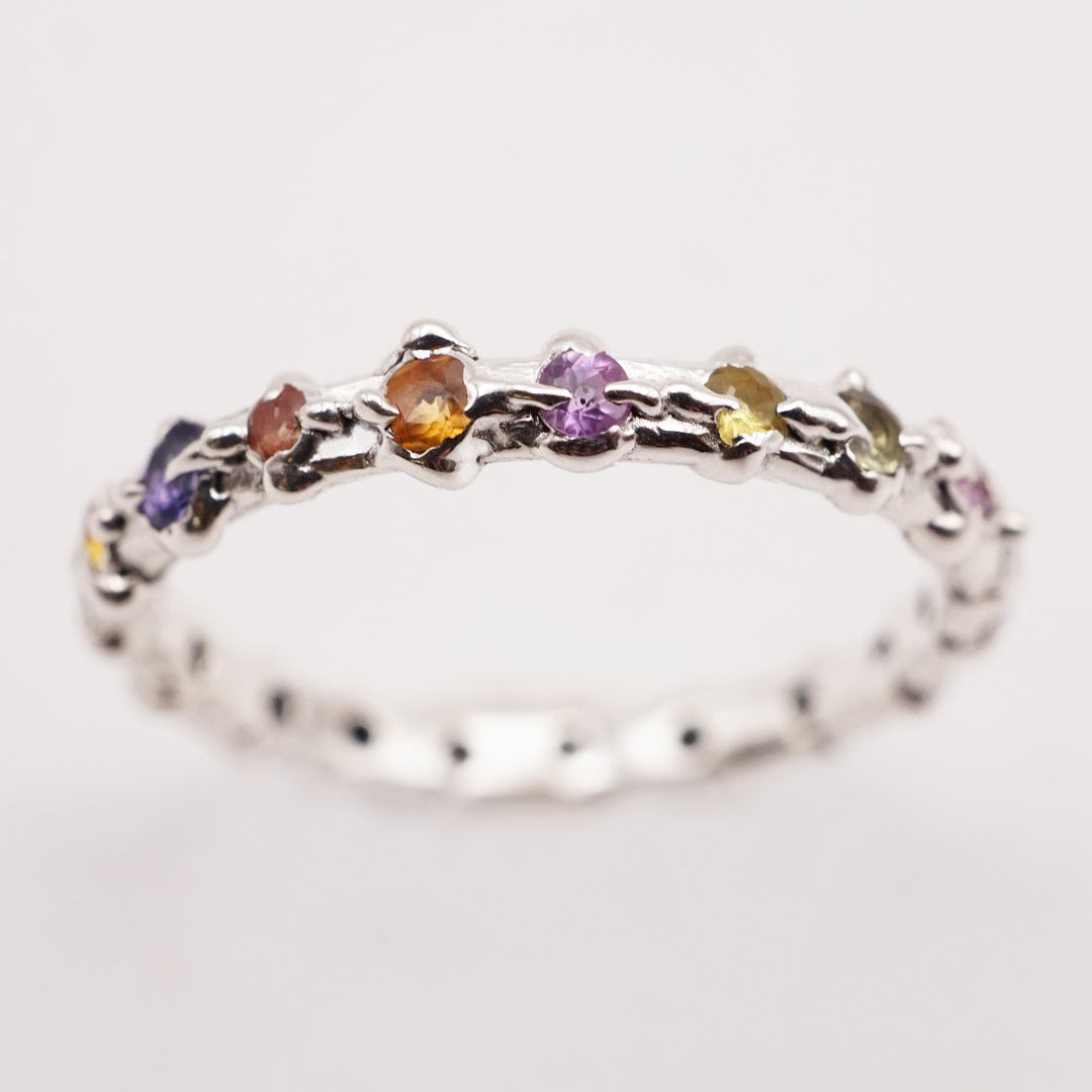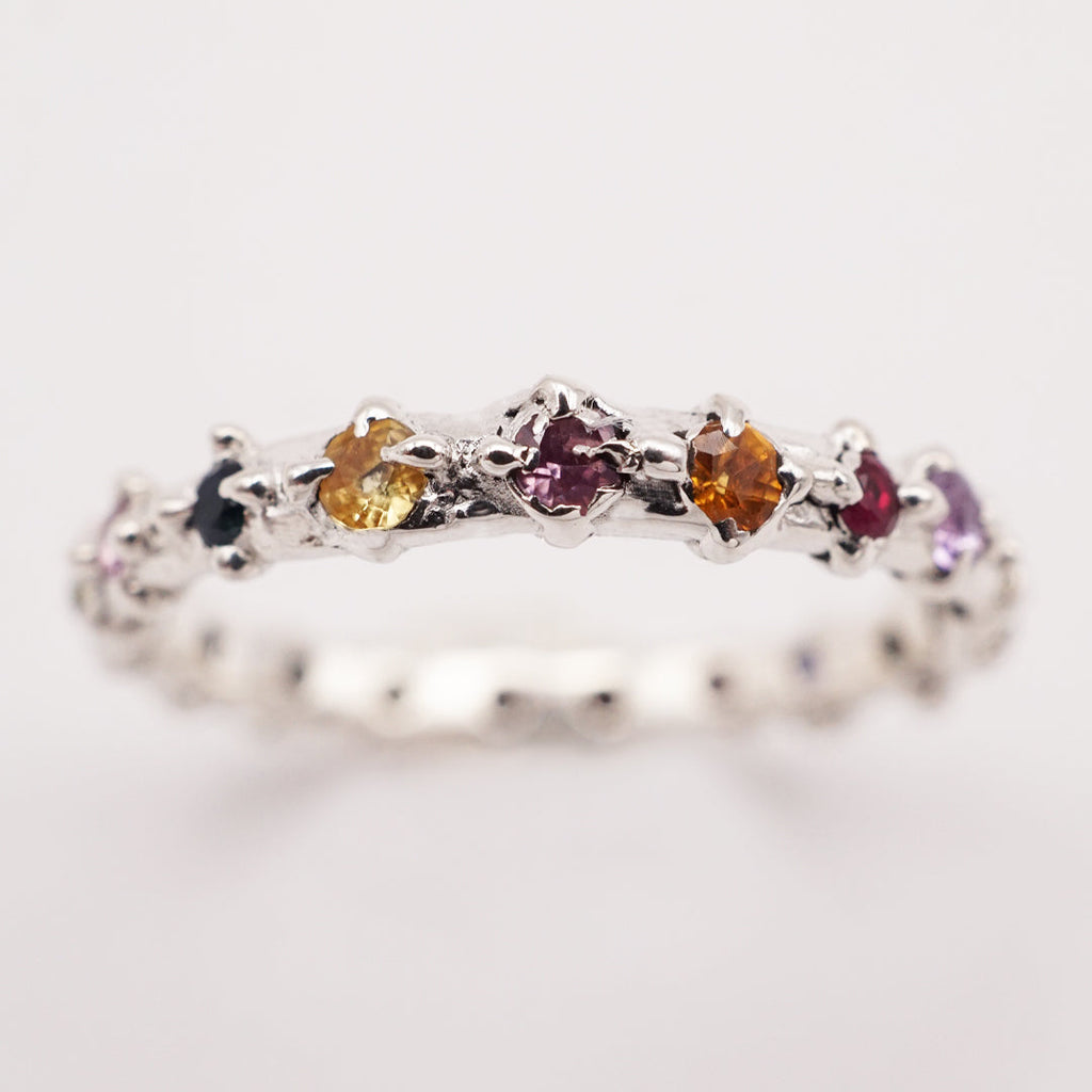 Jonc ultra texturé serti de saphirs multicolores de taille 2.2mm.