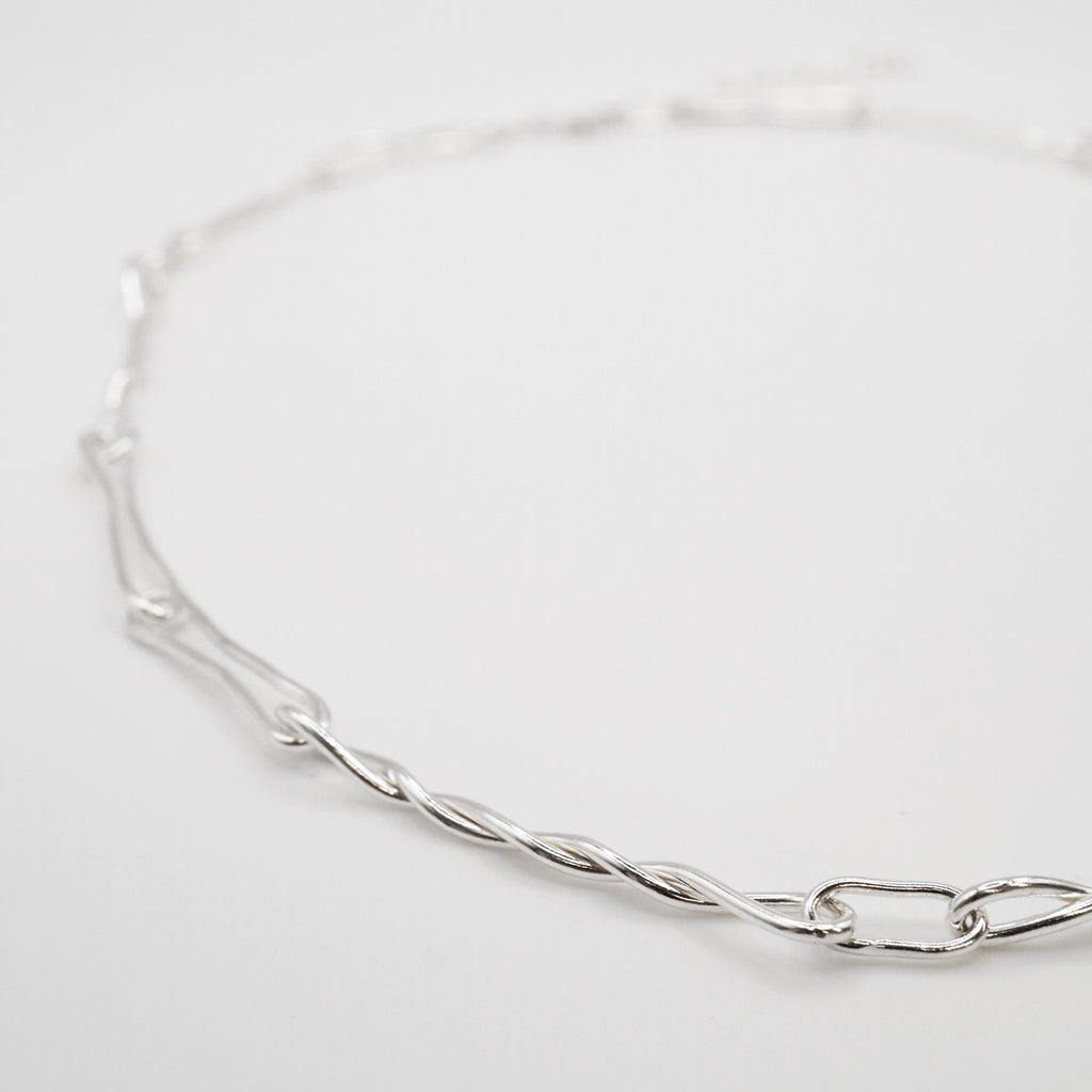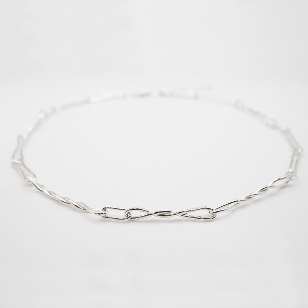 Collier court constitué de maillons formés à la main en d'argent sterling. Délicat et singulier il ajoute une note étincelante à votre cou et fera tourner les têtes.