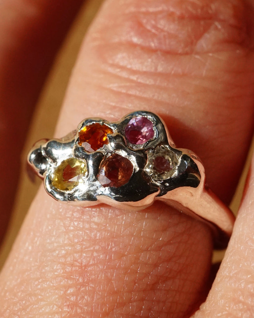 Bague DÉMÉTER - 5 saphirs colorés et argent