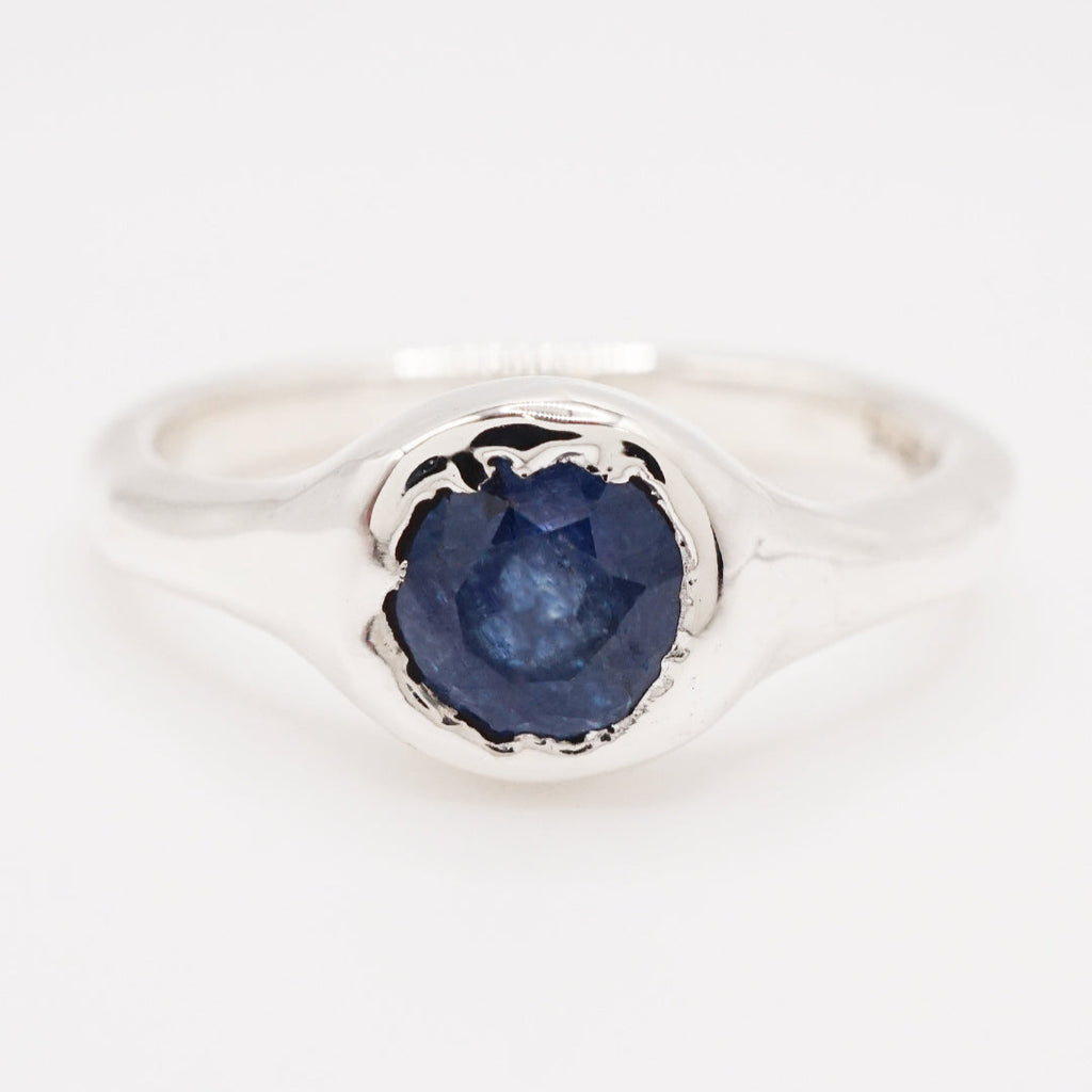 Bague texturée et fluide avec un saphir bleu 6mm.