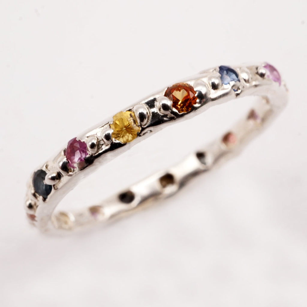 Jonc en argent sterling serti de saphirs multicolores de taille 2.2mm.